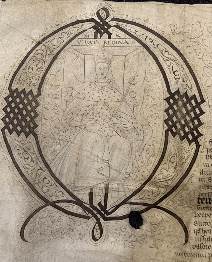 Marian imagery in legal documents such as the Queen’s Bench rolls, letters patent and charters symbolised the Queen’s role as the supreme judge of the land. Yet it also illustrated Mary as the embodiment of the law.
